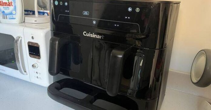 It’s important to note that the Cuisinart Tri Zone 13.6L Air Fryer and Oven is not compact, featuring two 4.3L baskets and a 5L flat oven drawer. Therefore, it may require ample space, unlike my previous appliance.